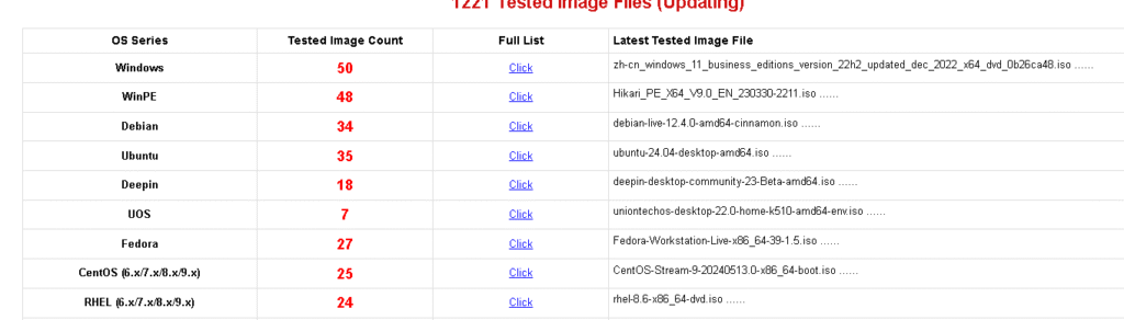 The ventoy tool’s site has over 1200 TESTED OS Imges.